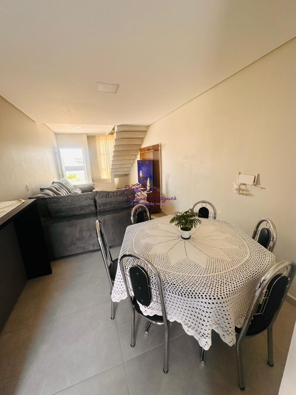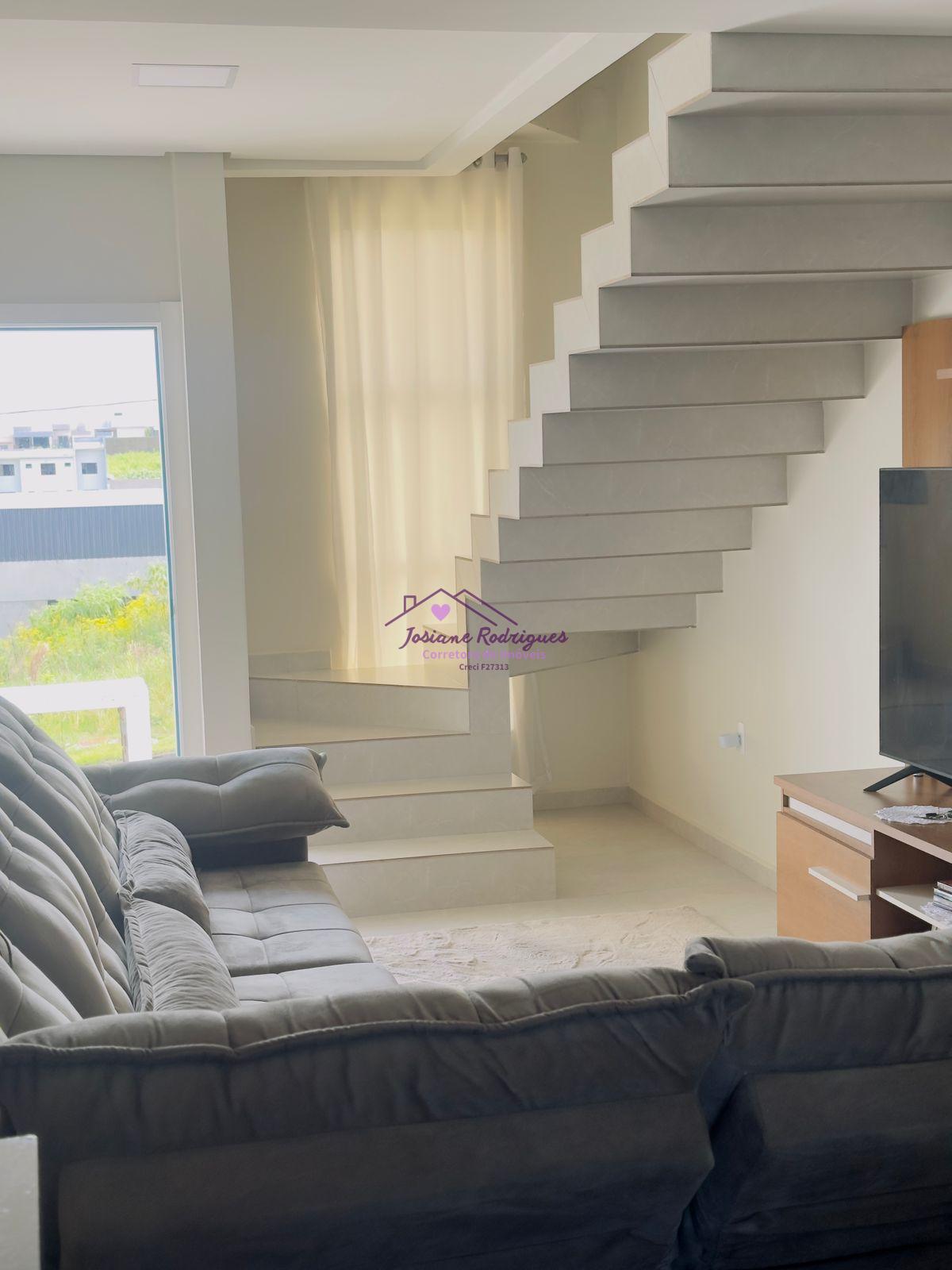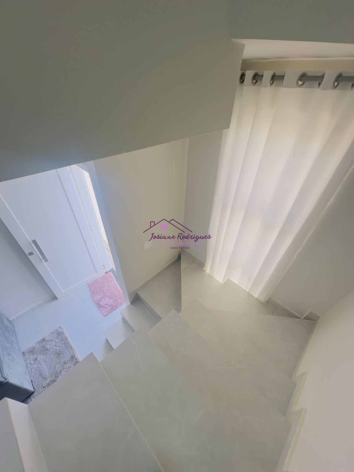 - Pavimento superior 01 suíte com sacada, 02 quartos, e 01 banheiro social. - Pavimento inferior 01 Sala de estar/TV, 01 cozinha com móveis sob medida, 01 lavabo, 01 área de serviço interna, 01 vaga de garagem privativa e individual.